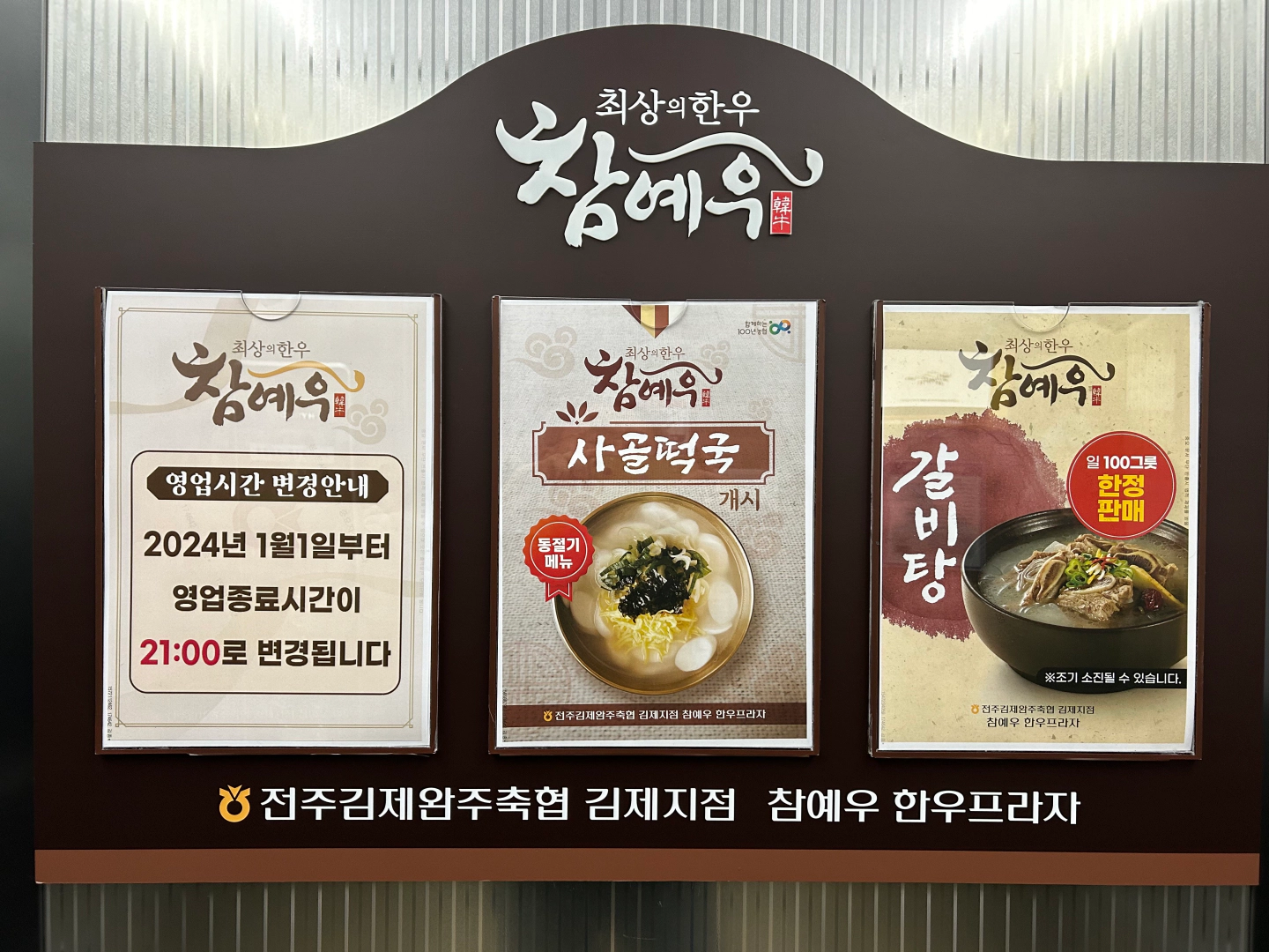 2023년 어느 가을에 전라북도 김제시를 방문하게 되었습니다. 평일 점심때 갈비탕을 먹기 위해 참예우한우플라자를 방문하였지만 갈비탕은 판매 완료가 되어 대신 한우탕을 먹었습니다. 갈비탕은 하루에 100그릇 한정판매를 하기 때문에 갈비탕을 먹기 위해서는 일찍 가야 한다고 합니다. 한우탕도 정말 맛있게 먹었습니다. 국물이 아주 진하고 반찬도 맛있었습니다. 가족들을 데리고 오고 싶은 곳이었습니다.